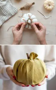 Kürbis basteln aus Stoff mit und ohne Nähen – DIY Herbstdeko