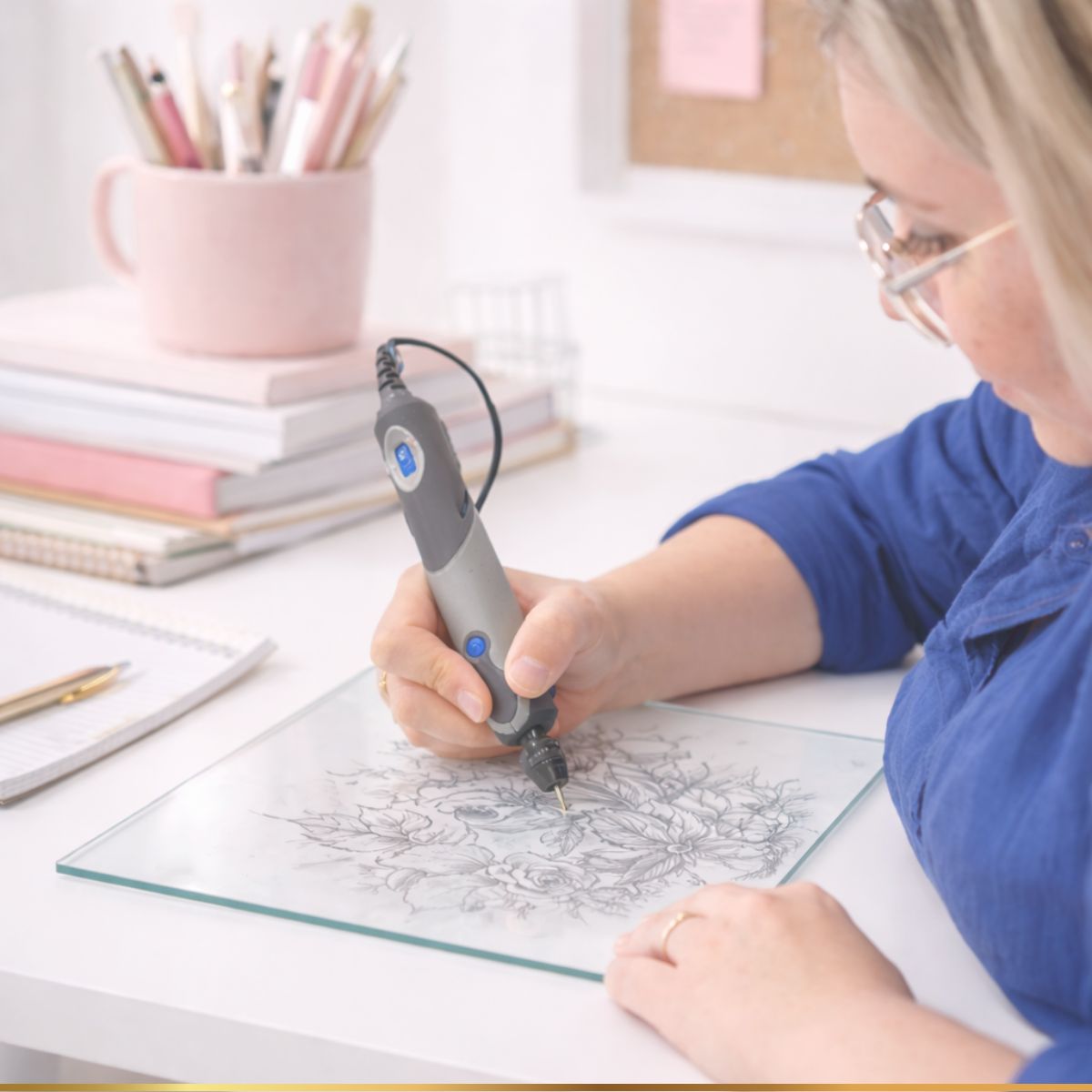 In diesem Workshop gestaltest du mit einem Dremel eine Glasscheibe und gravierst ein modernes Motiv direkt ins Glas.
